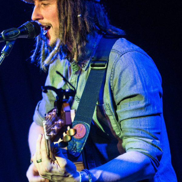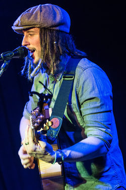 El cantante JP Cooper con su guitarra durante un momento de su actuación en The Soundhouse de Leicester en 2015.