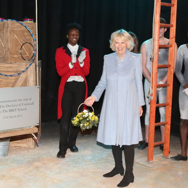 La Duquesa de Cornualles Camilla Parker Bowles visita una escuela de artes escénicas en Londres