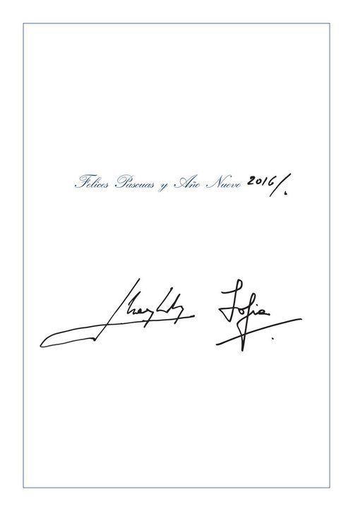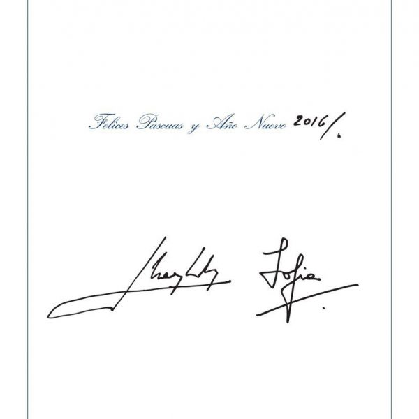 Felicitación de Navidad 2015 de los Reyes Juan Carlos y Sofía con sus respectivas firmas