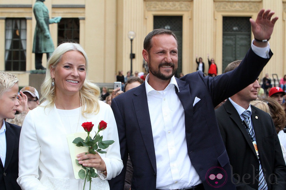 Los Príncipes Haakon y Mette Marit de Noruega en su 10º aniversario de boda.