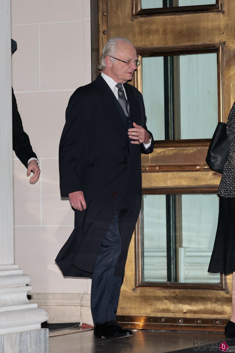 El Rey Carlos XVI Gustavo de Suecia tras la cena previa al funeral de Constantino de Grecia en el Hotel King George de Atenas.