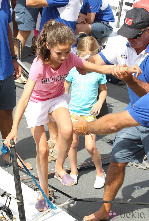 Victoria Federica de Marichalar es ayudada a subir al barco en el segundo día de regatas 2011.