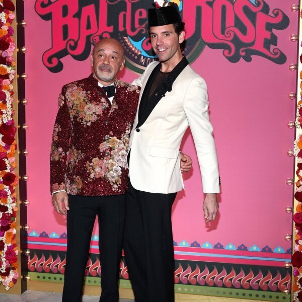 El diseñador Christian Louboutin y el cantante Mika en la Salle des Étoiles del Sporting Club de Monte-Carlo en el Baile de la Rosa de Mónaco 2023.