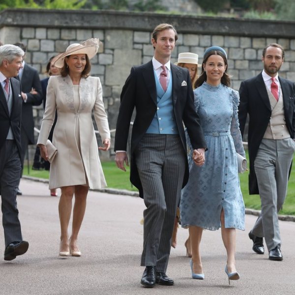 Pippa Middleton y James Matthews, Michael y Carole Middleton y James Middleton y Alizee Thevenet en la boda de Lady Gabriella Windsor y Thomas Kingston en Windsor.