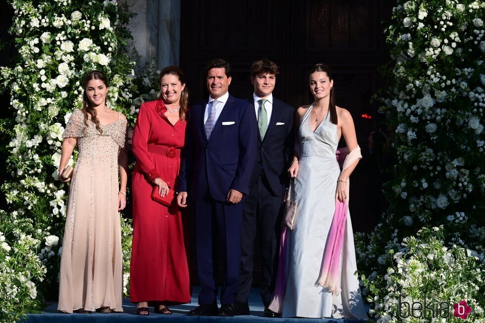 La Princesa Alexia de Grecia y Carlos Morales con tres de sus cuatro hijos en la boda de Theodora de Grecia y Matthew Kumar en Atenas