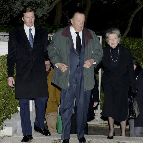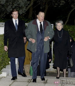 Los Príncipes Carlos y Ana de Calabria con su hijo el Príncipe Pedro de Borbón-Dos Sicilias en el funeral del aristócrata Julio Prado y Colón de Carvajal.
