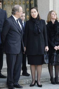 María Bordón Dos Sicilias muy apenada durante el funeral de su padre, Carlos de Borbón, duque de Calabria y Grande de España.