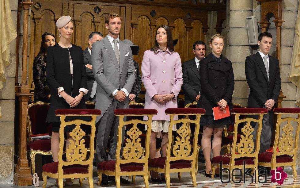 La pareja formada por Pierre Casiraghi y Beatrice Borromeo con la Princesa Alexandra de Hannover y Louis Ducruet en la celebración del Día Nacional de Mónaco 2015.