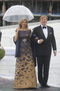 Los Reyes de Países Bajos a su llegada a la cena celebrada en la Ópera de Oslo con motivo del 80 cumpleaños de los Reyes Harald y Sonia de Noruega.