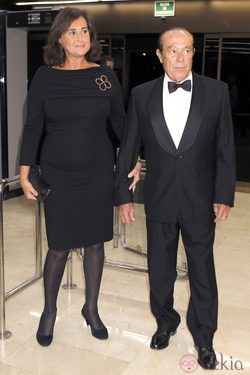 La pareja formada por Carmen Tello y Curro Romero en la cena de honor a los galardonados con el premio Mariano de Cavia, Luca de Tena y Mingote 2013.