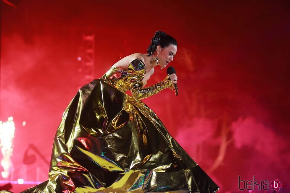 La cantante Katy Perry cantando en su actuación en el Concierto de la Coronación de Carlos III en el Castillo de Windsor.