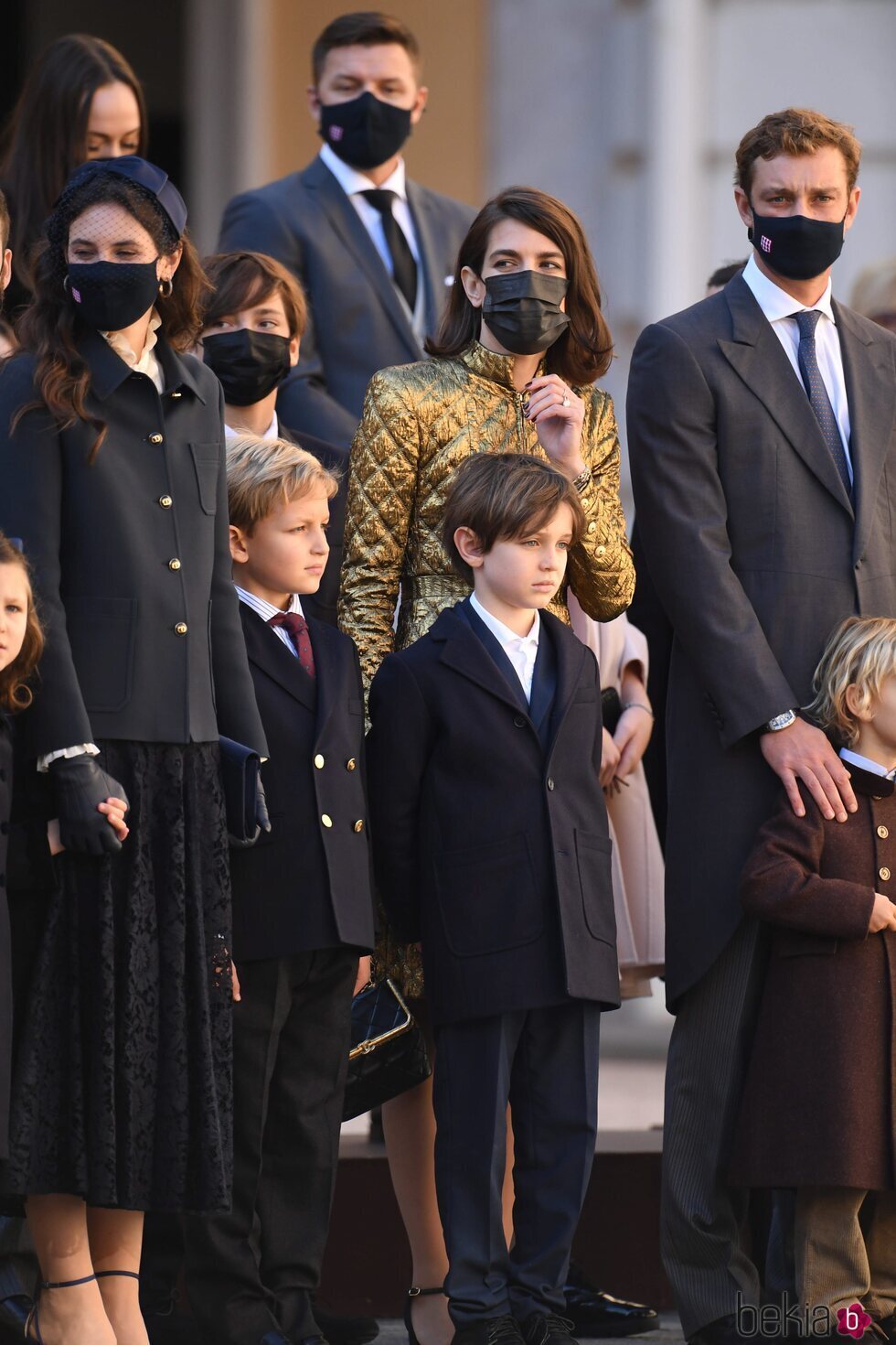 Tatiana Santo Domingo y su hijo Sacha Casiraghi, Carlota Casiraghi y su hijo Raphaël Elmaleh y Pierre Casiraghi en las celebraciones por el Día Nacional de Mónaco 2021.