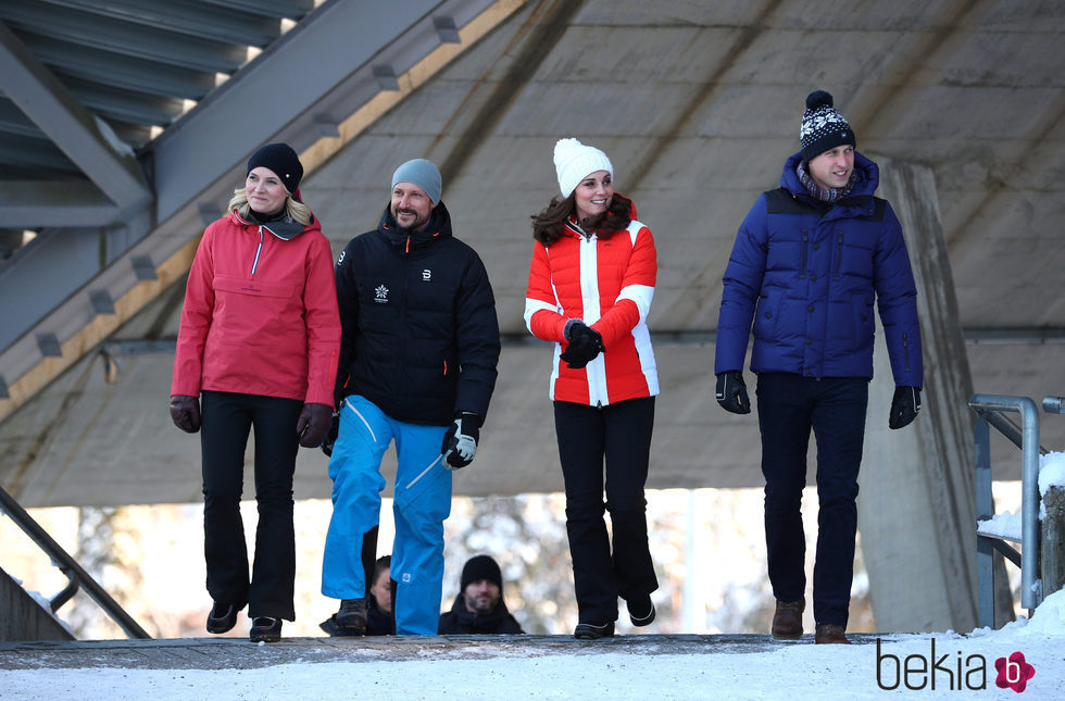Los Duques de Cambridge y los Príncipes Haakon y Mette-Marit pasean por una de las pistas más famosas de Noruega.
