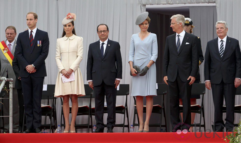 El Príncipe Guillermo y Kate Middleton, los Reyes Felipe y Matilde de Bélgica, el presidente de Francia y el presidente de Alemania en los actos por el centenario del estallido de la I Guerra Mundial.