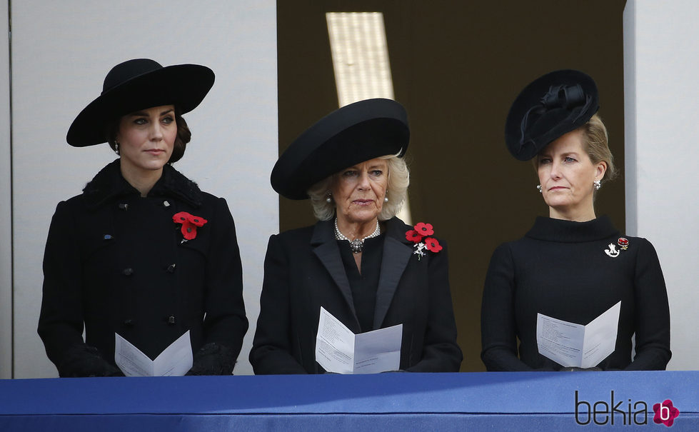 La Duquesa de Cambridge, la Duquesa de Cornualles y la Condesa de Wessex en la celebración del Día del Recuerdo 2016 en Londres.