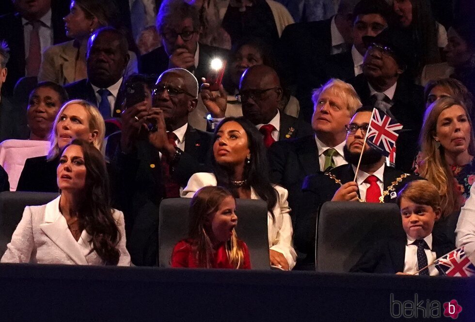 La Duquesa de Cambridge con el Príncipe Jorge con gesto cansado y la Princesa Carlota bostezando en la Platinum Party at the Palace, el concierto por el Jubileo de Platino.