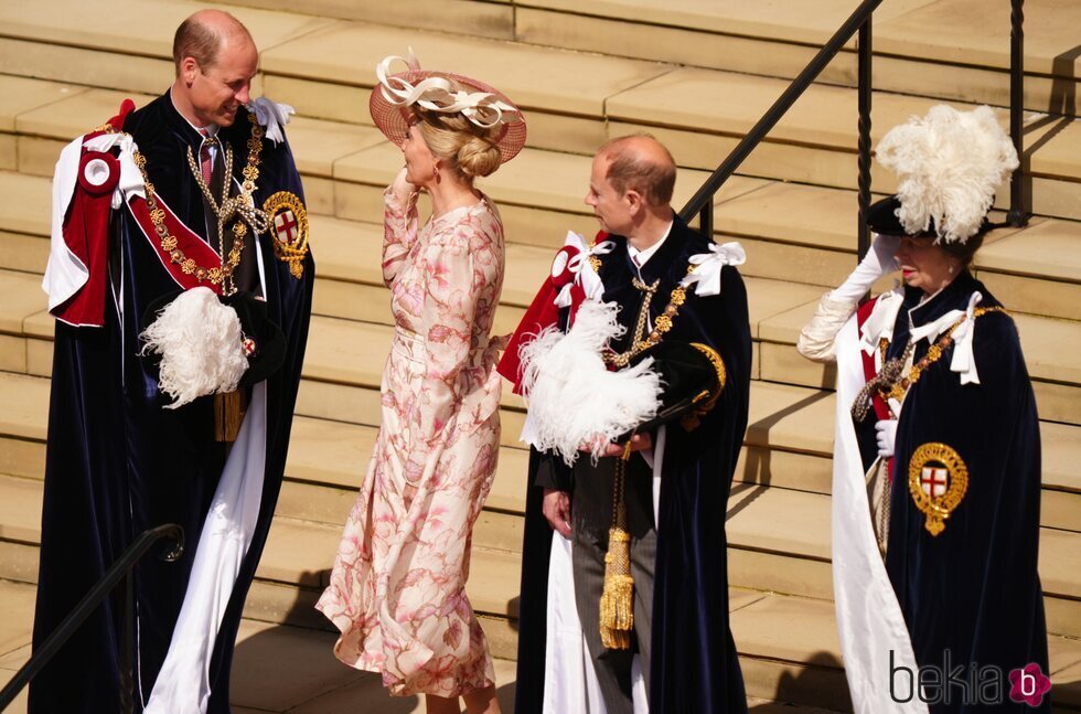 El Príncipe Guillermo hablando con la Duquesa de Edimburgo en presencia del Príncipe Eduardo y la Princesa Ana durante la celebración de la procesión de la Orden de la Jarretera 2024 en Windsor Castle.