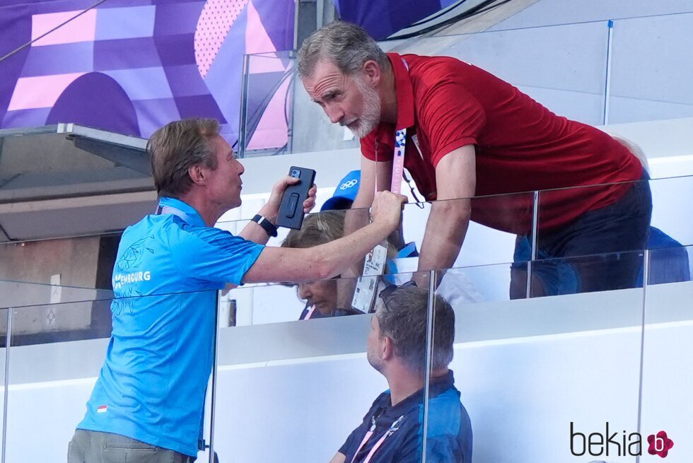 El Rey Felipe VI y el Gran Duque de Luxemburgo hablando en las competiciones de atletismo en los Juegos Olímpicos de París 2024.