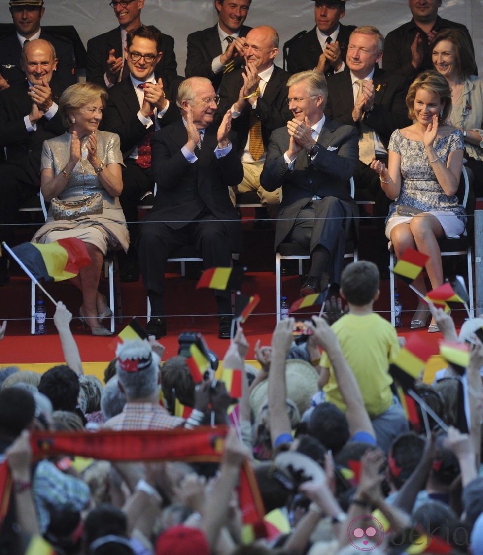 Los reyes belgas Alberto II y Paola y los príncipes herederos Felipe y Matilde de Bélgica en su último acto oficial como tales, en el National de Ball de Bruselas.