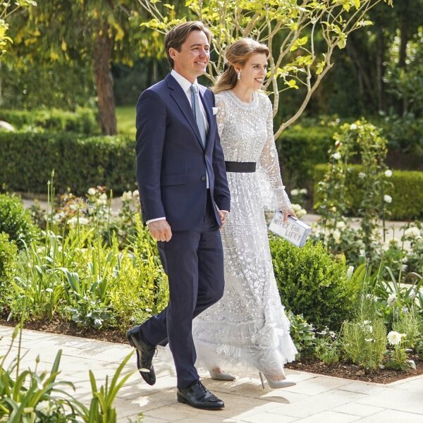 La Princesa Beatriz de York y Edoardo Mapelli Mozzi a su llegada a la boda de Hussein y Rajwa de Jordania en el Palacio de Zahran.
