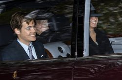 Charles Armstrong-Jones, Vizconde Linley, y Lady Margaret Armstrong-Jones, hijos de David Armstrong-Jones, de camino a Crathie Kirk para asistir a la misa del domingo durante su estancia en Balmoral (Escocia).