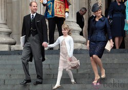 El Príncipe Eduardo de Inglaterra y la Condesa Sofía de Wessex junto a su hija Lady Louise Windsor a la salida de la misa de acción de gracias celebrada en la Catedral de St Paul con motivo del Jubileo de Diamante.