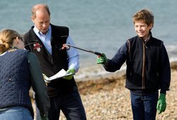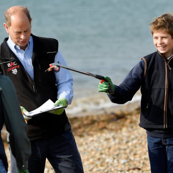 James Mountbatten-Windsor bromea con su hermana Lady Louise Mountbatten-Windsor en presencia del Príncipe Eduardo durante una recogida de basura en la playa con motivo de Great British Beach Cleans en Southsea.