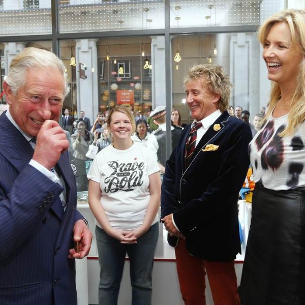El Príncipe de Gales, el cantante Rod Stewart y la modelo Penny Lancaster en la inauguración de la tienda solidaria Tomorrow's Store en Londres.
