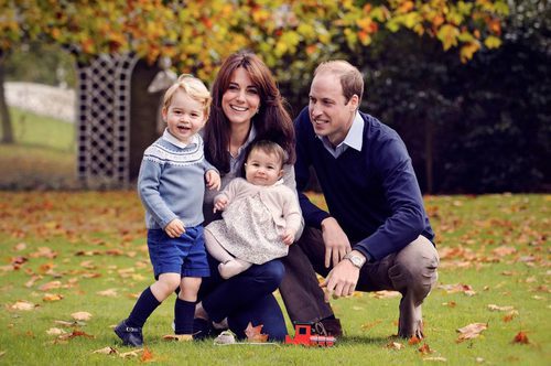 Los Duques de Cambridge posan con sus hijos, el Príncipe Jorge y la Princesa Carlota, para felicitar la Navidad 2015.