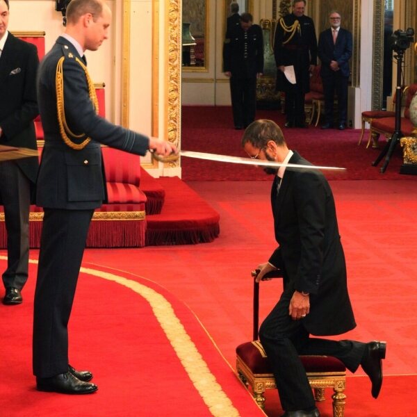El Príncipe Guillermo nombra Caballero a Ringo Starr en una ceremonia de investidura celebrada en el Palacio de Buckingham en marzo de 2018.