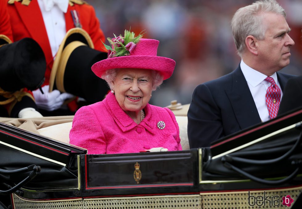 La Reina de Inglaterra con el tercero de sus hijos, el Príncipe Andrés, durante la celebración de las carreras de caballos Royal Ascot 2017.