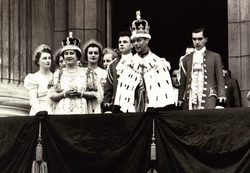 Jorge VI de Reino Unido saluda desde Buckingham Palace tras ser coronado Rey de Inglaterra el 12 de mayo de 1937.