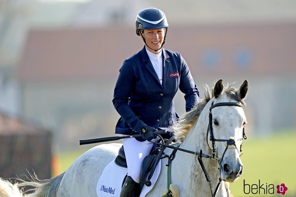 La amazona Zara Phillips montando a caballo durante su participación en el Barefoot Retreats Burnham Market International Horse Trials en Norfolk.