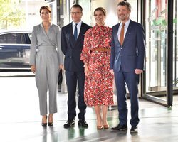 Los Príncipes Federico y Mary de Dinamarca con los Príncipes Victoria y Daniel de Suecia en una conferencia de industria danesa en Copenhague.