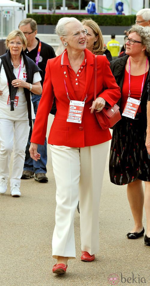 La Reina Margarita de Dinamarca durante su visita a la villa olímpica de los Juegos Olímpicos de Londres 2012.