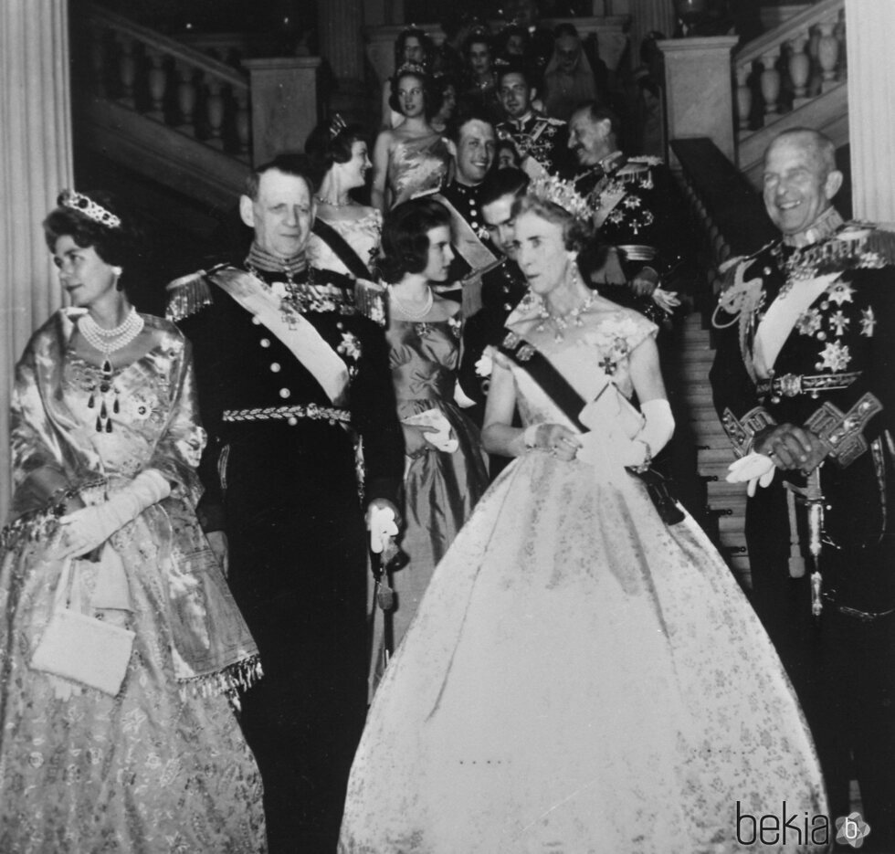 Los Reyes Pablo y Federica de Grecia, los Reyes Federico IX e Ingrid de Dinamarca, los Reyes Constantino y Ana María de Grecia y el Rey Harald de Noruega en 1963.