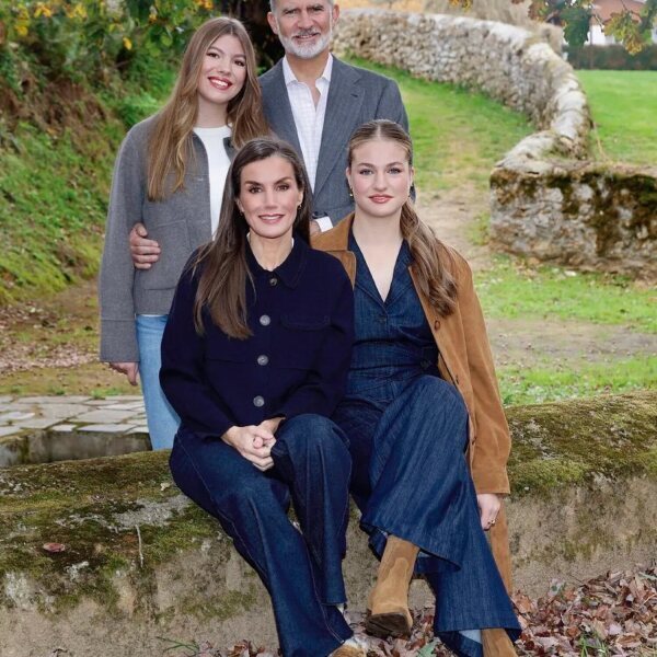 Los Reyes Felipe y Letizia posan junto a sus hijas, la Princesa Leonor y la Infanta Sofía, en el posado oficial de la felicitación navideña.