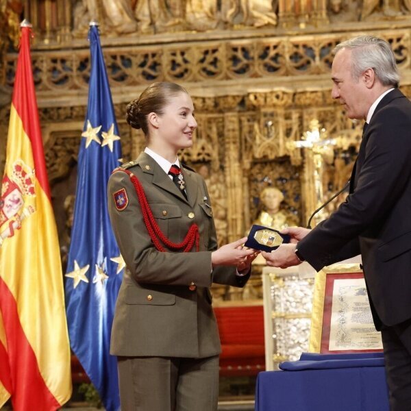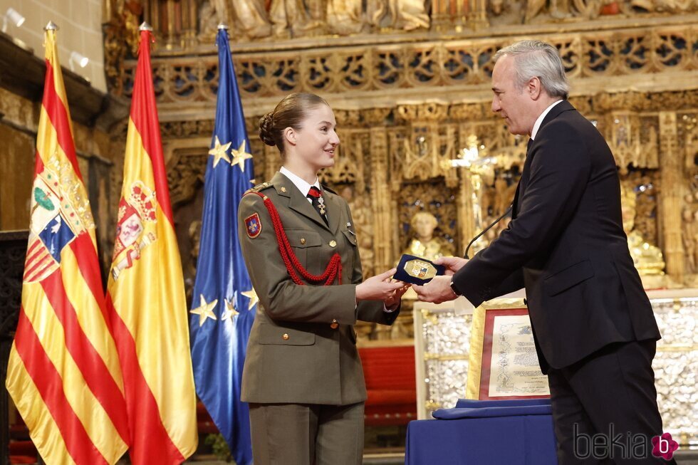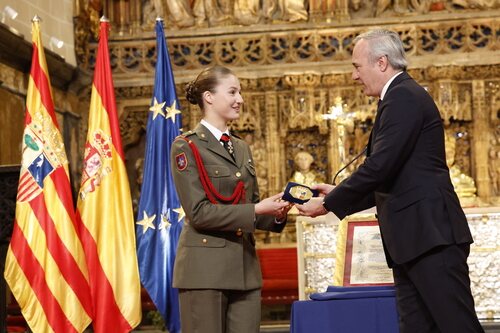 El Presidente de Aragón, Jorge Azcón, entrega la Medalla de Oro de Aragón a la Princesa Leonor en el Altar Mayor de la Seo del Salvador de Zaragoza.