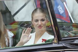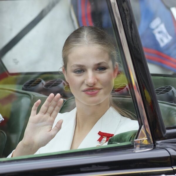 La Princesa Leonor es fotografiada dentro del Rolls Royce llegando a la Jura de la Constitución que va a tener lugar en el Congreso.
