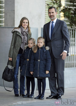 Los Príncipes de Asturias y sus hijas visitan al Rey en el Hospital Quirón de Madrid tras su nueva operación de cadera.