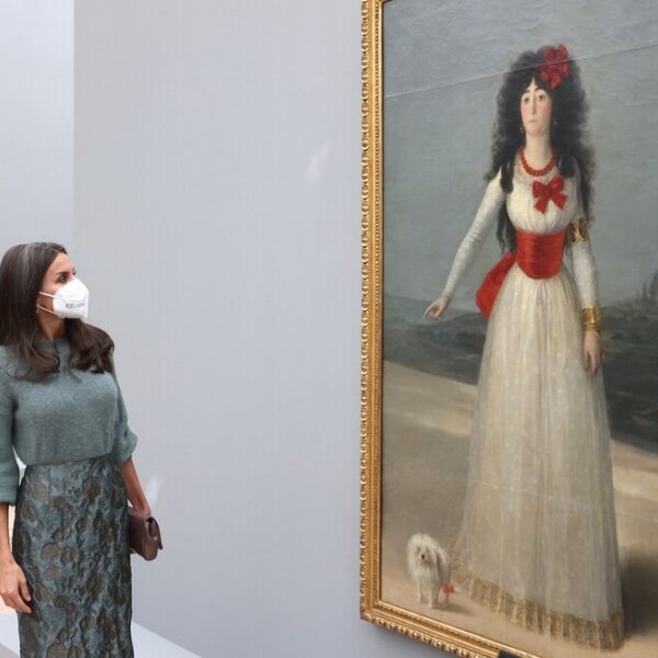La Reina Letizia ante el retrato de 'La duquesa de Alba de blanco' en la inauguración de la exposición 'Goya' en la Fundación Beyeler de Basilea.
