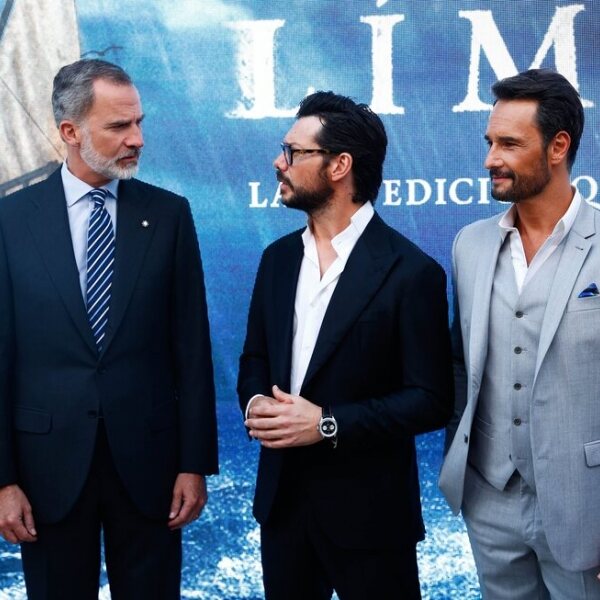 El Rey Felipe ha posado en el photocall del estreno de la miniserie 'Sin límites' junto a Álvaro Morte y Rodrigo Santoro.