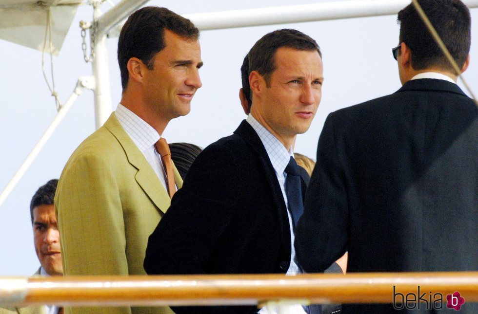El entonces Príncipe de Asturias junto al Príncipe Haakon de Noruega un día antes de su boda con Mette-Marit, celebrada el 25 de agosto de 2011.