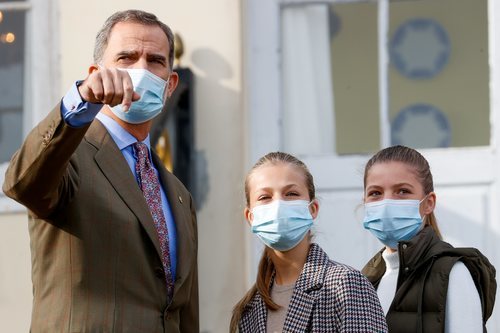 El Rey Felipe con sus hijas, la Princesa Leonor y la Infanta Sofía en Somao, galardonado como Pueblo Ejemplar de Asturias 2020.
