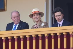 El Rey Juan Carlos, la Duquesa de Lugo y Felipe de Marichalar en la corrida de toros en Aranjuez en homenaje a Doña María de las Mercedes, Condesa de Barcelona.