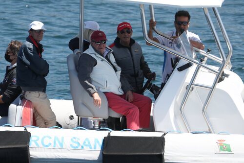 El Rey Juan Carlos montando en la embarcación Cristina para seguir la regata InterRías del IV Circuito Clase 6mR de la Copa de España en su regreso a España.