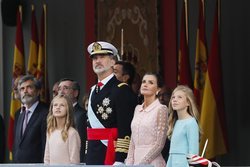 Los Reyes Felipe y Letizia, la Princesa Leonor y la Infanta Sofía durante la celebración del Día de la Hispanidad 2019.