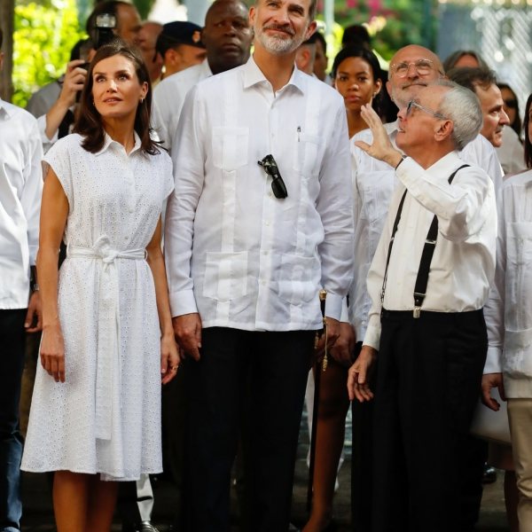 Los Reyes Felipe y Letizia en El Templete de la Plaza de Armas de La Habana Vieja durante su Visita de Estado a Cuba.