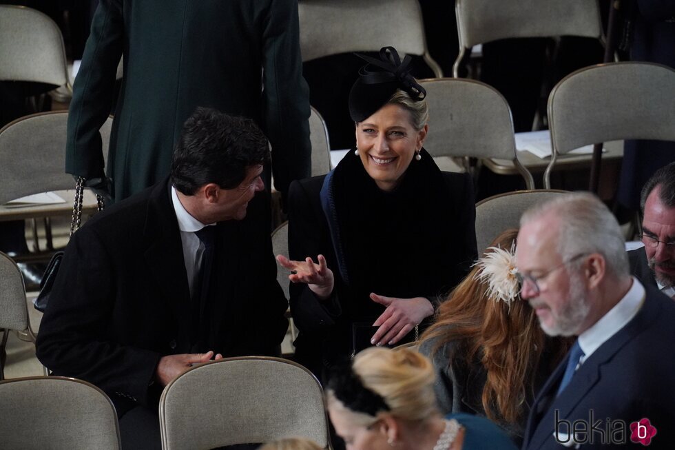 Los cuñados Carlos Morales y Tatiana de Grecia, muy cómplices en el homenaje a Constantino de Grecia en Windsor.