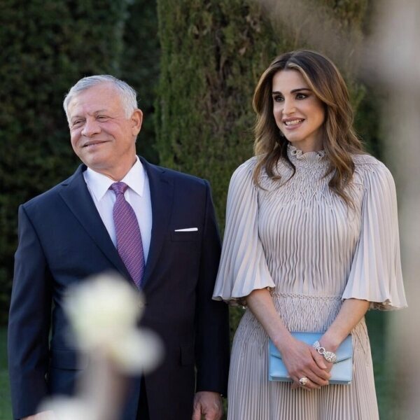 Los Reyes Abdalá y Rania de Jordania en la boda de Iman de Jordania y Jameel Alexander Thermiotis, celebrada el 12 de marzo de 2023 en el Palacio Beit Al Urdun de Amman.